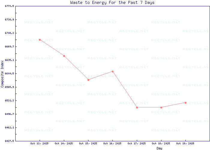 The Waste to Energy Composite Index tracks the changing market prices of a group of waste commodities that are recovered for their energy conversion value . The Index consists of a weighted basket of 9 benchmark grades of waste derived fuels. The Index includes snapshots of 5 viewpoints of market trends : the past 7 days, past 30 days, past 90 days, past 1 year and past 2 years.
